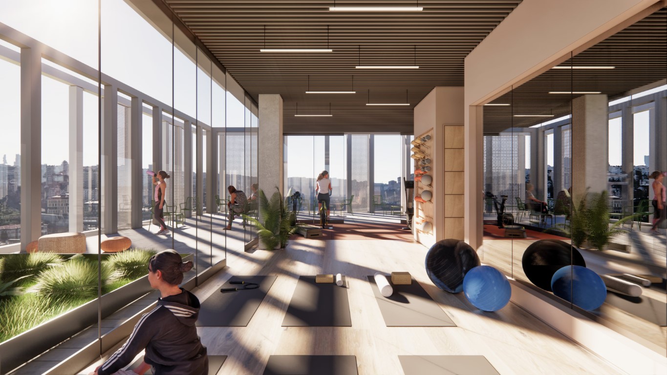 Тренажерный зал, конференц-залы и общие рабочие места.